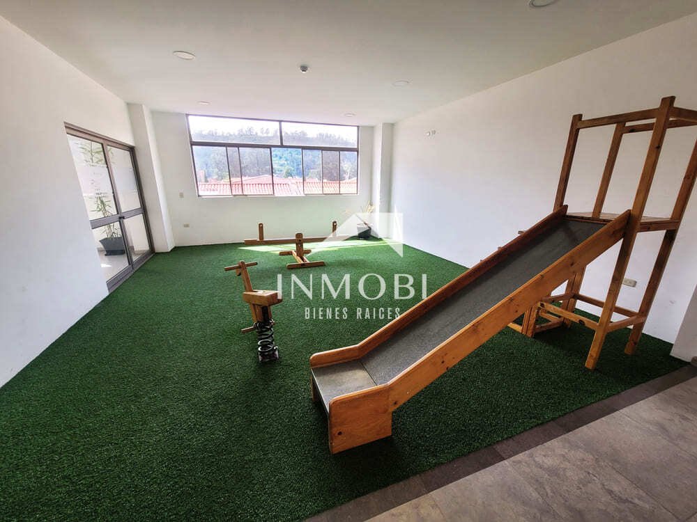 El edificio ofrece múltiples beneficios como guardianía, ascensor, portero eléctrico, gas centralizado, parqueo de visitas, áreas comunales y juegos infantiles, lo que lo convierte en una excelente opción tanto para vivir como para invertir.